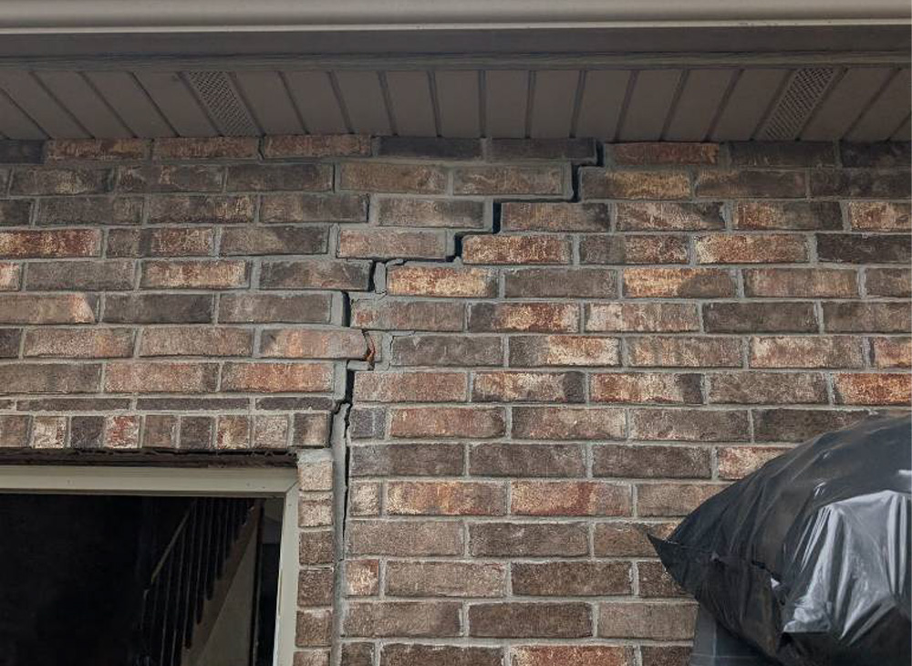 A detached brick shop building was showing classic signs of foundation settlement. The property owner had noticed growing stair-step cracks in the brick veneer along